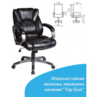 Надежный механизм качания "Top Gun" обеспечивает хорошую поддержку спины и поясницы за счет возможности свободного качания с фиксацией в одном рабочем положении и регулировку угла наклона под вес сидящего.