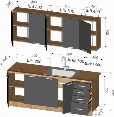 Шкаф верхний: 800х705х300 мм