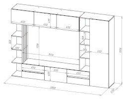 Длина ниши под телевизор, см 163
