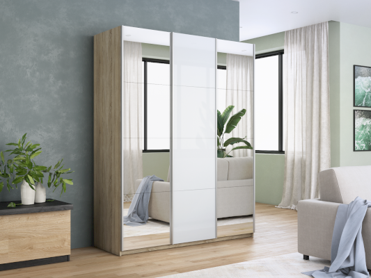 Шкаф-купе 3-х дверный Прайм Зеркало/Белое стекло/Зеркало 1800х2300х570 мм