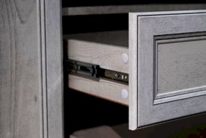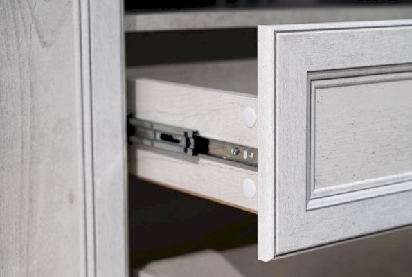 Очень важная деталь – универсальная сборка модели, а это значит, что тумбу можно расположить как слева, так и справа – в зависимости от особенностей хозяина. Если вы правша, то удобен классический вариант – слева, а для левши этот блок можно «отзеркалить» и перенести в противоположную сторону. При необходимости дверцу можно перевесить, и она будет открываться в любую сторону. Дверца и выдвижной ящик снабжены металлическими ручками, которые учитывают анатомию ладони, поэтому ими очень удобно пользоваться.