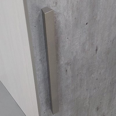 Посудный шкаф со стеклянной дверцей позволит выставить в гостиной те коллекционные и памятные вещицы, которыми вы дорожите. Стеклополки в обработке еврокромкой выдерживают до 10 кг каждая. Их можно декоративно подсветить с помощью светодиодной подсветки (в комплекте не поставляется, приобретается отдельно). Фасад перенавешивается на левую и правую сторону. Серебристая стильная ручка из массива дерева и серое тонирование стекло фасада вносят смелые дизайнерские штрихи в восприятии актуального декора "под бетон".