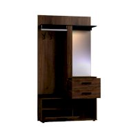 Комбинированный модуль Nature 70 Шкаф МЦН можно расположить в прихожей в составе шкафной группы или автономно. В небольшом по габаритам модуле сочетается всё необходимое: открытая вешалка, тумба для обуви, полка для головных уборов, выдвижные ящики, зеркало с подсветкой. Встроенная светодиодная подсветка включается при помощи аккуратного кнопочного выключателя. Выдвижные ящики оснащены шариковыми направляющими. Откидной фасад обувной тумбы дополнительно фиксируется при закрывании магнитной защелкой. В комплектацию входит мягкая подушка из черной экокожи с золотой строчкой. Собрать шкаф МЦН можно как на правую, так и на левую сторону.