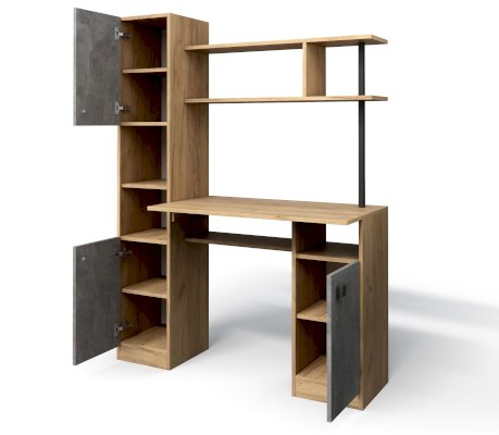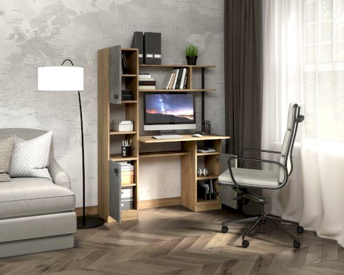 Пенал (дополнительная секция) превращает простой функциональный стол в полноценную рабочую зону, он вмещает закрытые полки для хранения документов и две ниши под дополнительную оргтехнику.