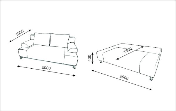 - габаритные размеры 2000*1000