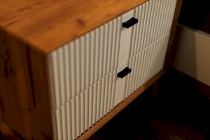 • Два выдвижных ящика на направляющих нижнего крепления не полного выдвижения с доводчиком.