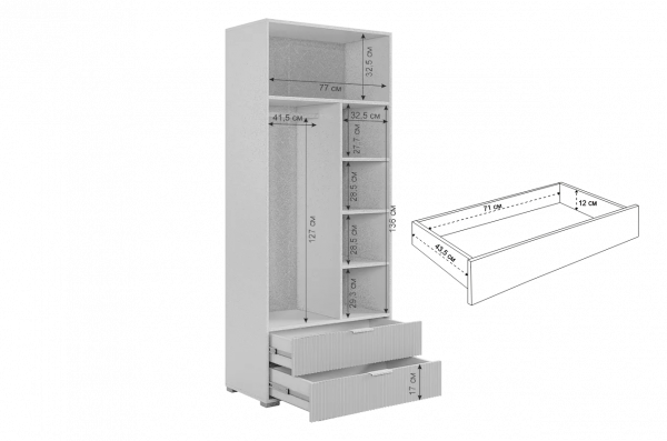 Размер двухдверного шкафа: ШхГхВ 800х422х1900 мм