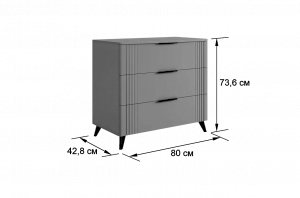 Комод изготовлен из качественных материалов: корпус выполнен из ЛДСП, что гарантирует прочность и долговечность, а фасад, выполненный из МДФ в плёнке ПВХ, не только выглядит эстетично, но и защищает комод от повреждений. Особое внимание заслуживает фрезеровка фасадов, которая придаёт изделию изысканный вид.