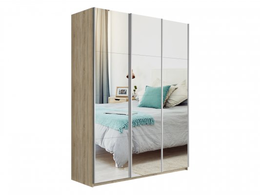 Шкаф-купе 3-х дверный Прайм Зеркало/Зеркало/Зеркало 1800х2300х570 мм Сонома