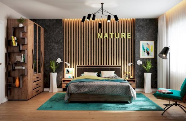 Двуспальная кровать NATURE Люкс станет стильным дополнением для вашей спальни. Спокойный древесный декор кровати поможет создать атмосферу настоящего уюта и комфорта в комнате. А контрастные вставки из ЛДСП и декоративные золотые нити на черной экокоже сделают изголовье кровати более интересным и современным. Экокожа очень легко чистится и не выгорает под воздействием солнечных лучей. Для кровати можно докупить Основание универсальное с подъемным механизмом, тем самым скомплектовать кровать с вместительным дополнительным местом для хранения. Подъемные кровати позволяют экономно использовать пространство вашей спальни, а специальный механизм подъема с газлифтами - легко пользоваться отделением для хранения.