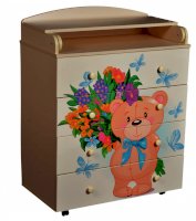 Пеленальный комод 800/4 Lilu 2 отличается привлекательным дизайном с использованием тематических детских принтов. В конструкции изделия предусмотрены 4 маленьких передвижных колеса, несколько вместительных ящичков на шариковых направляющих и откидывающаяся пеленальная столешница. Детский пеленальный комод, декорированный красочным рисунком, вмещает в себя постельные принадлежности, средства гигиены, распашонки, подгузники, игрушки, ползунки и другие личные вещи ребенка. Гладкая столешница идеально подходит для пеленания ребенка, а колесики позволяют быстро перемещать комод.